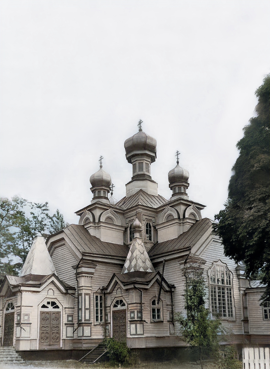 Дерев’яний храм Богоявленського монастиря (побудований у 1897-му році) без жодного цвяха. Стояв на Великій Бердичівській, з чудовим Монастирським садом (зрубали в 1960 р.) і річкою Поповкою (русло річечки засипали, а сам потік запустили в труби), збудували житлові будинки, потім у 1970 р. збудували 33- ю школу. Владу почало дратувати сусідство церкви зі школою, тоді її закрили. Почався скандал, віруючі писали скарги до всіх інстанцій. Комуністи нічого кращого не вигадали – взяли і церкву знесли. Церква була зруйнована за одну ніч у серпні 1975-го року за наказом партійних чиновників радянського союзу.