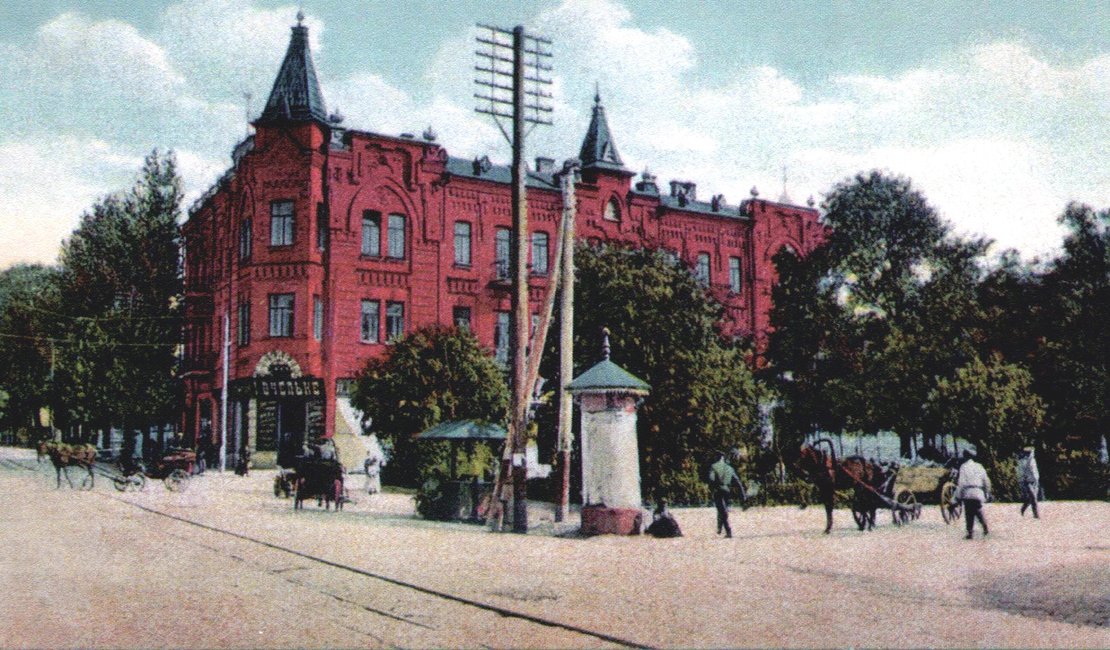 Фото реставрація Житомира, старовинного будинку, приблизний час кінець 19-го, початок 20-го століття, що зберігся донині, стоїть на розі вулиць Великої Бердичівської і Першого Бульвару. Зараз на будинку тільки відсутні вежі на даху.