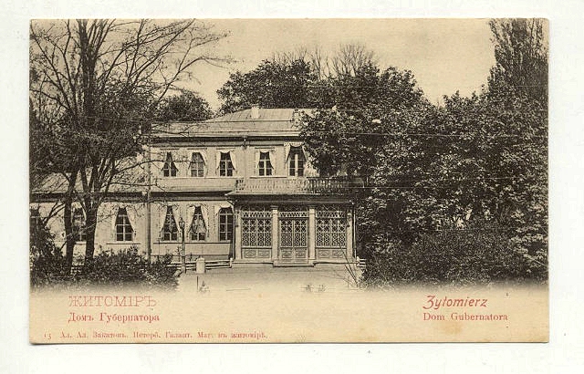 Фото та фото-листівки Житомира будинку губернатора Волинської губернії, який був розташований по вулиці Київській.