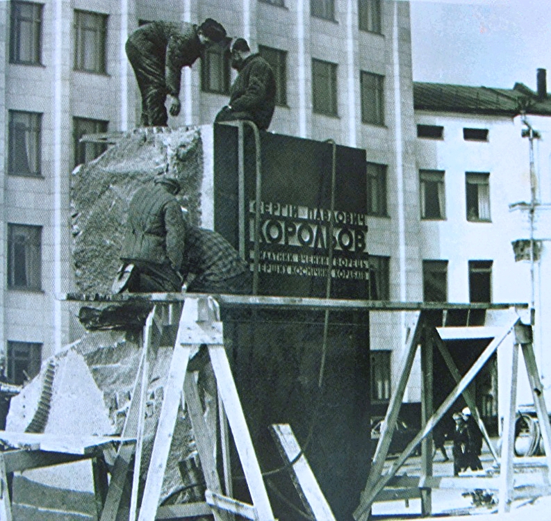 Фото Житомира 1971-го року, будівництво постаменту в березні 1971-го року, та доопрацювання у квітні 1971-го року, скульптором, автором проекту О. Олійником портрету пам’ятника С.П. Корольову архітектора А. Д. Корнєєва , який було відкрито (фото), 29-го квітня 1971-го року (відео).
