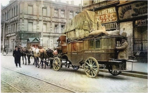 Житомир Фото 19010го року, діліжансу, що курсував по тракту Київ-Житомир на початку XX-го століття. А в Житомирі, ці старовинні діліжанси прибували сюди… Будівля старовинної пошти Житомира