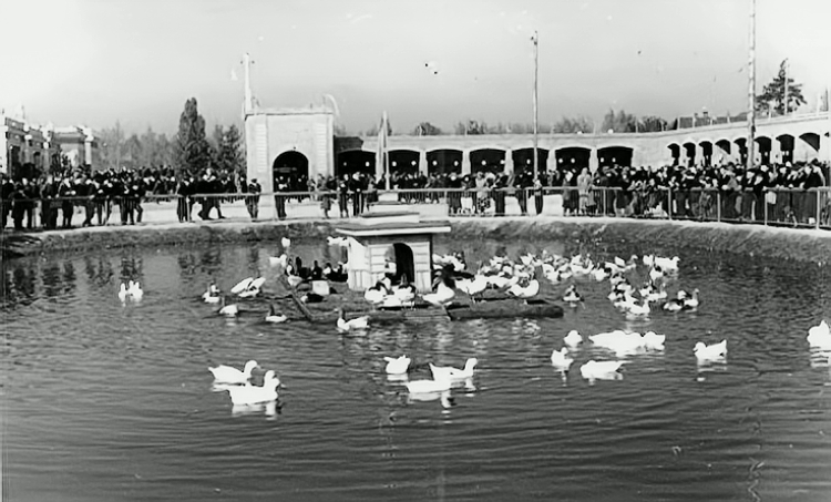 Фото Житомира кінотеатр “Врожай”, будинок (зберігся) за аркою “Мистецькі ворота”, навколо якого була виставка ВДНГ.