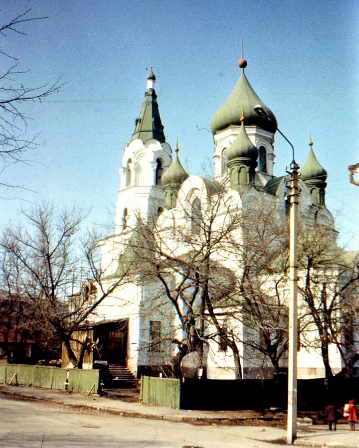 Фото житомирської Хрестовоздвиженскої церки 1970-х років. Автор яких Валентин Іванович Негребецький, житомирянин, плівки якого були знайдені Юрієм Кузнецовим на смітнику.