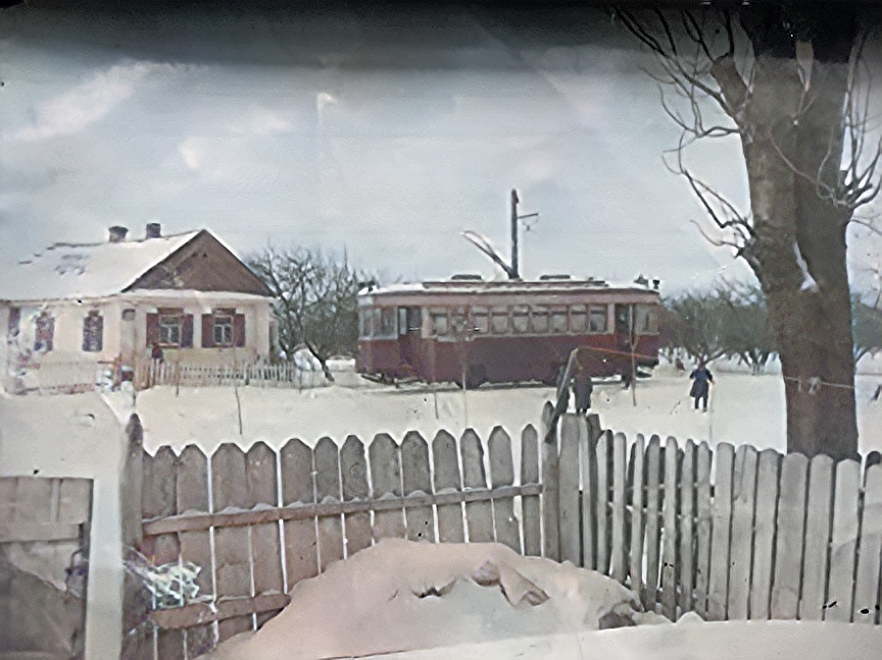 Фото, старий трамвай Житомира з вул. Перемоги до Богунії. (40-50 ті, XX-го ст.)