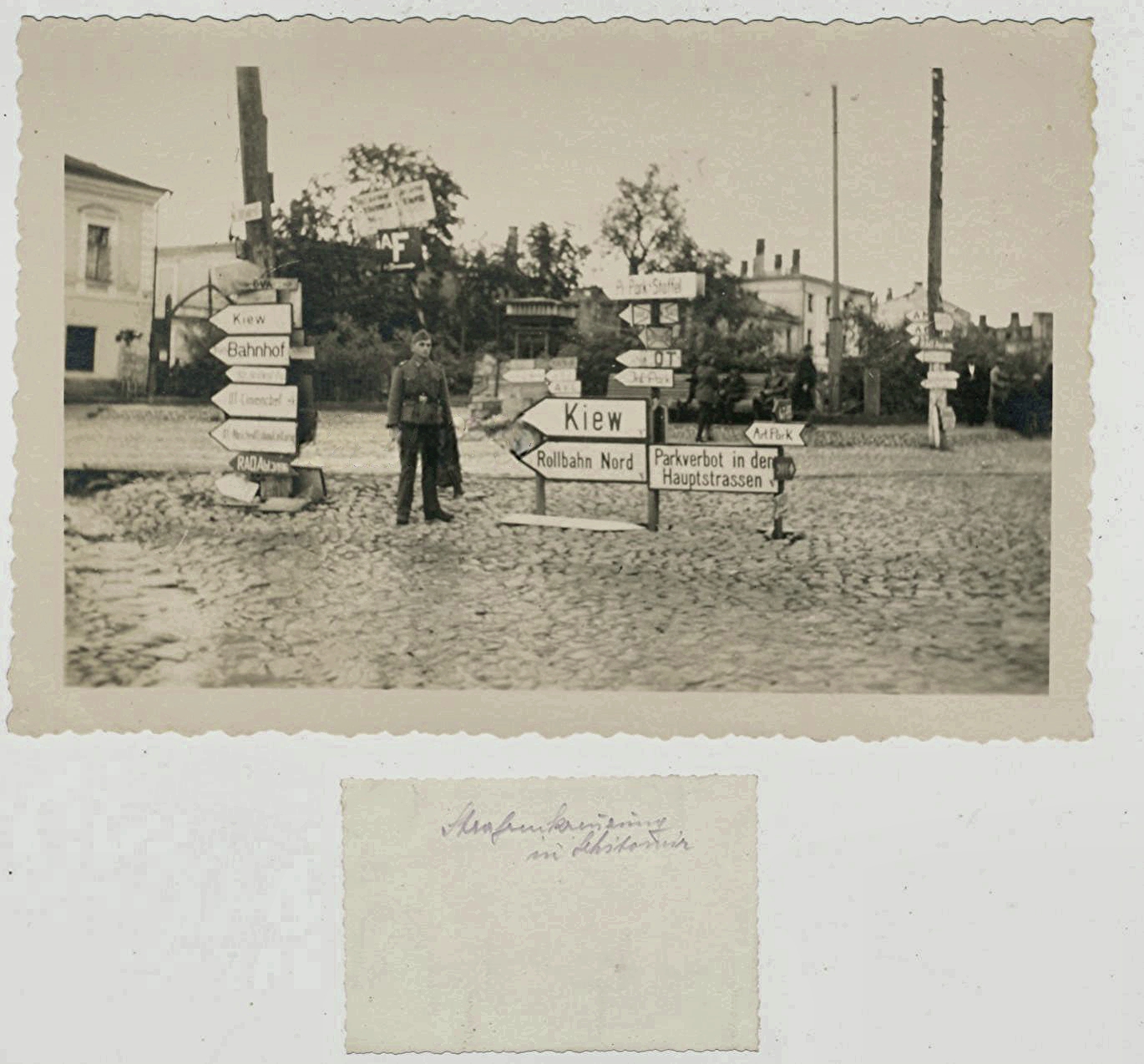 Дорожні вказівники у центрі Житомира у роки 2-ї світової війни