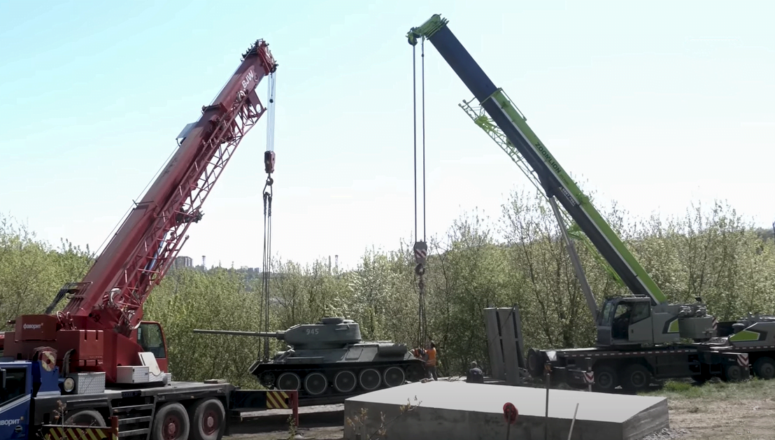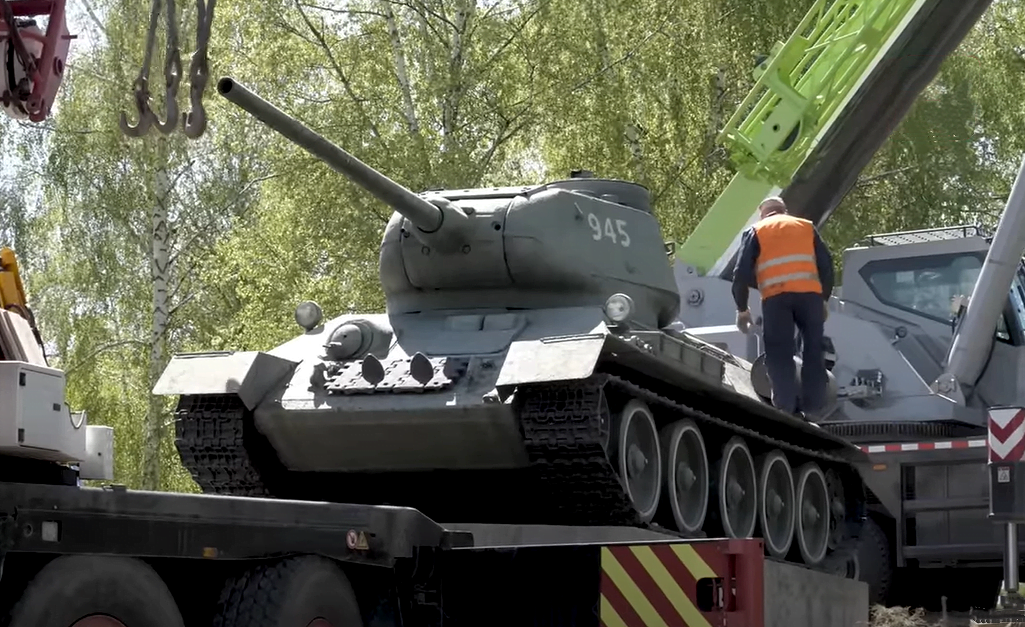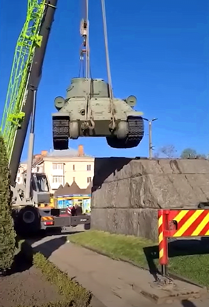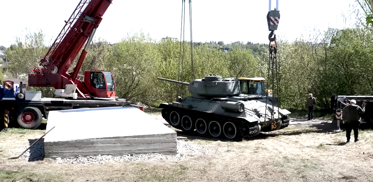 Ще 1-го березня 2022 року танк намагалися зняти, але не змогли, і лише 5-го травня процес демонтажу танка, анонсований мером Житомира С. Сухомлином 21-го квітня, перенесення його до Монумента Слави в Житомирі, був успішно та безкоштовно завершений.