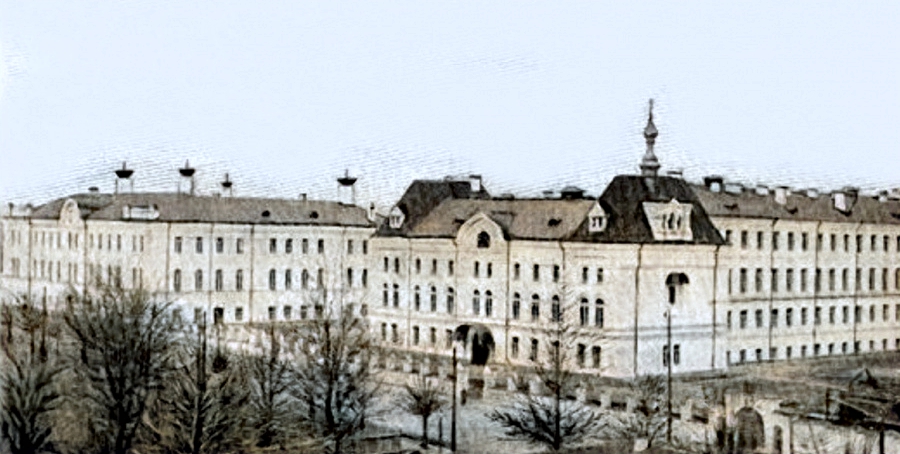 Фото Житомира початку XX-го століття, будівлі Житомирської Духовної семінарії. У будівлях семінарії була розміщена домова Трьохсвятительська церква, освячена на честь трьох святителів: Василя Великого, Григорія Богослова та Іоанна Золотоустого. Зараз це будинкі, що вулиці Грушевського (був. Котовського, у минулому – вул. Іларіонівської), де згодом був розміщений завод “Електровимірювач”.