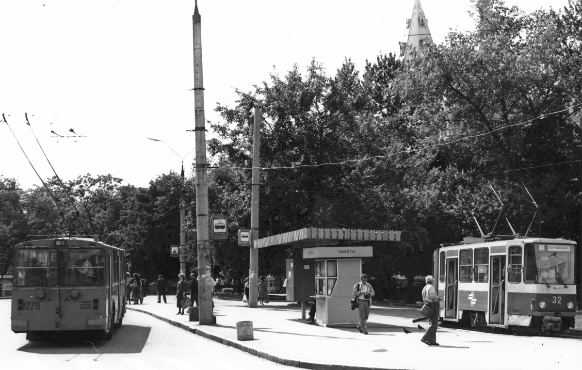 Тролейбус та трамвай на майдані Перемоги Житомир